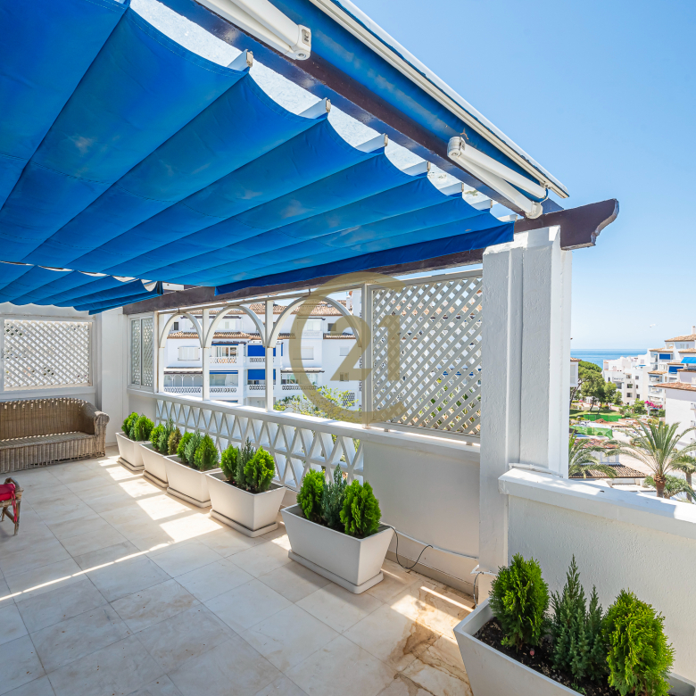 Esta excelente adosado esta situado en una exclusiva urbanizacion cerrada con vigigilancia 24hs. con increibles vistas al mar, tres zonas de piscinas y amplios jardines, a pocos metros de un pequeño centro comercial con supermercado, gran variedad gastronomica y tren y parada de autobus.