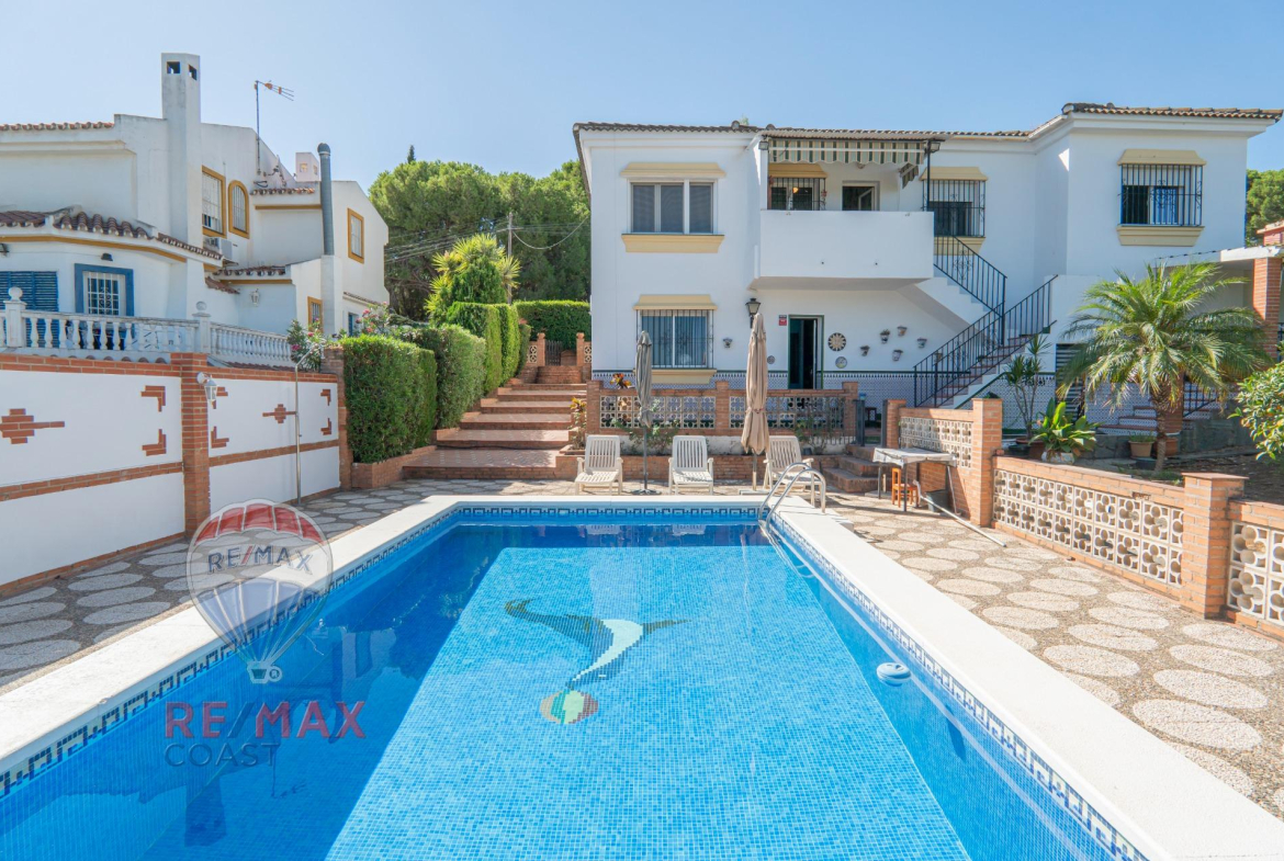 Imagina despertar cada mañana con unas vistas abiertas que alcanzan hasta Málaga, rodeado de la tranquilidad de la urbanización Pinos de Alhaurín. Este chalet independiente está pensado para familias que buscan un hogar amplio, cómodo y rodeado de naturaleza, sin renunciar a la cercanía de todos los servicios.~~La vivienda principal dispone de 3 dormitorios, 2 baños, una cocina independiente recientemente renovada y un salón-comedor muy luminoso. Desde la cocina se accede a una encantadora terracita con vistas despejadas, el lugar perfecto para disfrutar de la tranquilidad del entorno. En la entrada principal se encuentra un gran porche y un espacio bajo techo para aparcar el coche con comodidad.~~Bajando por unas escaleras exteriores desde la cocina, se llega a la planta baja, donde encontramos una habitación adicional, un gran trastero/almacén con cocinita y baño, además del acceso directo al jardín con piscina privada. Aquí también hay un espacio tipo terraza ideal para barbacoas y reuniones al aire libre.~~Al otro lado de la parcela, de más de 1.000 m² y cuidadosamente mantenida, se encuentra una acogedora casita de invitados totalmente equipada, perfecta para recibir a familiares o amigos, además de una construcción independiente tipo taller/trastero que aporta aún más funcionalidad.~~Aunque las escaleras forman parte de su diseño y hacen que no sea la mejor opción para personas mayores o con movilidad reducida, este hogar es ideal para familias con niños que buscan amplitud, independencia y un entorno cuidado en cada detalle.~~Además, Alhaurín de la Torre es uno de los municipios más atractivos del área metropolitana de Málaga. Ofrece numerosos colegios e institutos, incluso un colegio privado, lo que lo convierte en un lugar ideal para todo tipo de familias. La localidad destaca también por su gran oferta de actividades culturales y deportivas, su cercanía a Málaga capital, al aeropuerto internacional, a las playas de la Costa del Sol y a una amplia variedad de supermercados, restaurantes y servicios que hacen la vida diaria más cómoda y completa.~~En cumplimiento de las obligaciones de información previstas en la Ley 10/2025, de 28 de diciembre, de servicios de atención a la clientela y transparencia, así como en la normativa sectorial vigente, se hace constar que el precio indicado no incluye los gastos e impuestos inherentes a la adquisición, los cuales se desglosan a continuación:~Los honorarios de intermediación en esta compraventa están incluidos en el PVP~ITP (Impuesto de Transmisiones Patrimoniales): Se aplicará el tipo impositivo vigente en la Comunidad Autónoma de Andalucía, 7% (40.600€), sin perjuicio de tipos reducidos del 3,5%, 1,2% o 1% aplicables según las circunstancias personales del comprador o las características del inmueble. El impuesto se devenga sobre el Valor de Referencia Catastral o el precio de venta, aquel que resulte superior~Notaría: Los honorarios notariales se calcularán conforme al arancel oficial (RD 1426/1989, de 17 de noviembre)~Registro: La inscripción en el Registro de la Propiedad se facturará según el arancel oficial (RD 1426/1989, de 17 de noviembre)~Gestión (Gestoría): Opcional. Si el cliente lo solicita, los honorarios por la tramitación administrativa, liquidación de impuestos e inscripción registral ascienden de forma estimativa a 395 € aprox. (IVA incluido)~Se informa al cliente que dispone de la correspondiente Ficha Informativa de Segundas o Ulteriores Transmisiones de Viviendas~Puede calcular su situación personal en el portal oficial de la AgenciaTributaria de Andalucia-Información Tributaria-Impuestos.~~Este inmueble se comercializa mediante sistema de Multiexclusiva. Por ese motivo, le rogamos que se ponga en contacto directo con nosotros sin importunar directamente a propietarios u ocupantes de la propiedad.~