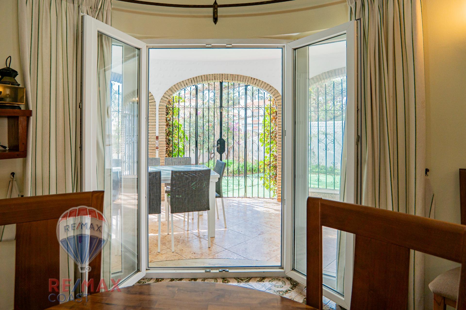 Chalet independiente en la playa de Torrox. Con 860 metros de parcela.~~La casa dispone de 4 habitaciones , 3 baños un salón grande con comedor y con salida directa al porche y jardín . ~La cocina, al igual que el resto de la propiedad, está totalmente amueblada.~~La vivienda dispones de un hall de entrada , terrazas y un maravilloso jardín con zona de barbacoa y un huerto con sistema de riego de goteo. ~Hay posibilidad de hacer una pequeña terraza en la zona alta de la casa, lo que daría unas fantásticas vistas al mar, que se encuentra a pocos pasos.~Se entrega totalmente amueblada y equipada, tal cómo se muestra, incluso el sistema de alarma.~El garaje dispone de una puerta automática y en él también se guardan todos los utensilios , corta césped y herramientas que se quedan en la propiedad.~~Torrox Costa cuenta destaca por sus playas de arena dorada y aguas tranquilas, ideales para disfrutar del sol y el mar.~El paseo marítimo es una de sus joyas. Está repleto de restaurantes, chiringuitos, bares y tiendas. Es un lugar ideal para pasear, practicar deporte o relajarse frente al Mediterráneo.~Es una zona muy tranquila en la misma costa pero a la vez con todos los servicios necesarios muy cercanos.~No dudes en visitarla.~~En cumplimiento del artículo 10 del R. D. de la Junta de Andalucía 218/2005 de 11 de octubre por el que se aprueba el reglamento de información al consumidor en la compraventa y arrendamiento de viviendas en Andalucía, informamos al cliente que tiene a su disposición la Ficha Informativa en Segundas o Ulteriores Transmisiones De Viviendas. El precio de la vivienda no incluye los gastos de compraventa (notaría, registro e I.T.P.).~No existen honorarios de intermediación inmobiliaria adicionales al precio de venta.~~Este inmueble se comercializa mediante sistema de Multiexclusiva, lo que implica que, cualquier gestión realizada en relación con la compraventa del mismo, habrá de ser realizada a través de nuestra agencia. Por ese motivo, le rogamos que se ponga en contacto directo con nosotros sin importunar directamente a propietarios u ocupantes de la propiedad.~