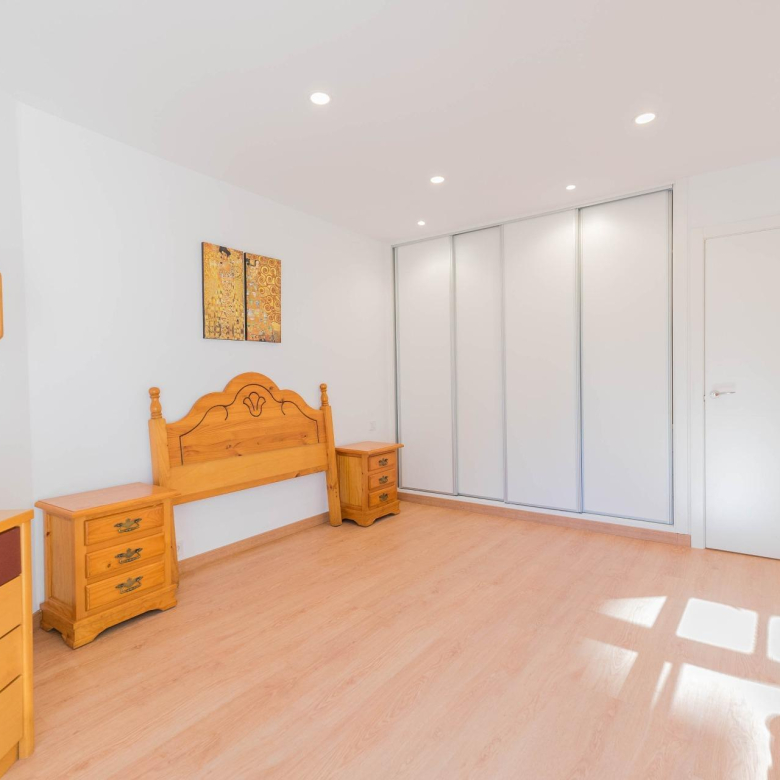 At the heart of the property is a traditional patio that brings light and soul into the home. Inside, you’ll find three spacious bedrooms, including a master suite with en suite bathroom and a walk-in closet. There is a second full bathroom with toilet, as well as a separate guest toilet. The bright living room features a beautiful fireplace and flows seamlessly into the fully equipped kitchen, both with direct access to the garden. The villa is equipped with a built-in combined air conditioning and heating system, ensuring comfort all year round.