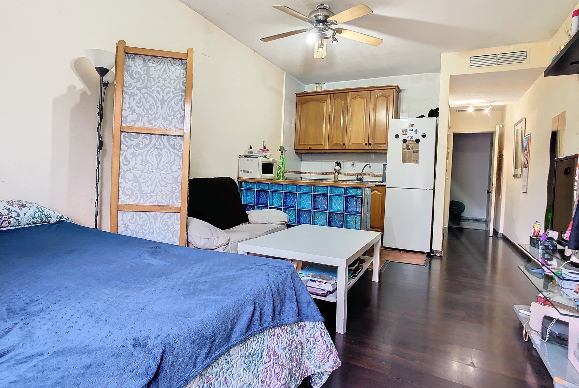 la vivienda consta de 1 baño, cocina con barra americana, aire acondicionado, el edificio tiene piscina comunitaria, plaza de garaje incluida en el precio. El Estudio se encuentra en muy buena zona, donde tienes acceso, a supermercados, hospitales, parque infantil, restaurantes, tan solo a 8min de la playa y con acceso directo a la autopista. También una muy buena, oportunidad de inversión, tiene licencia turística, se encuentra en las Chapas, Marbella.