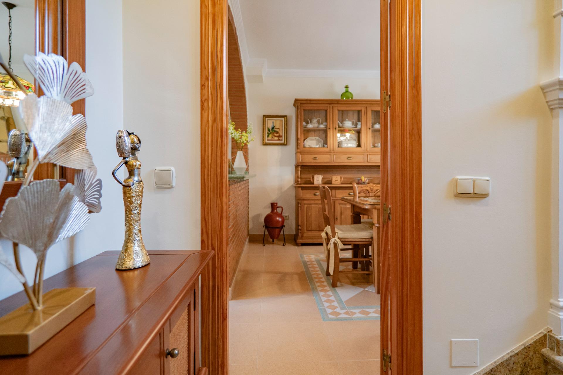 El hogar que estabas buscando: amplitud, comodidad y privacidad.~~Imagina despertar cada día en una vivienda independiente diseñada para disfrutar de cada rincón., esta casa de te ofrece todo el espacio que necesitas: y un entorno de tranquilidad inigualable.~~Justo en la entrada nos encontramos con un porche de entrada.~En la planta baja encontramos un amplio salón, un baño, una cocina integrada a otro salón mas familiar y acogedor ya que cuenta con una chimenea, perfecto para crear recuerdos en familia. ~La cocina es amplia y totalmente equipada, conecta con una despensa-lavandería, un acogedora terraza de verano, ideal para disfrutar de comidas al aire libre. Además, cuenta con una barbacoa, la terraza cuenta con muchas comodidades.~~En la primera planta nos encontramos tres dormitorios el principal con vestidor y baño en suite. Las tres habitaciones son dobles, más un baño independiente para estas dos habitaciones.~~En esta planta tenemos una puerta de acceso a una buhardilla, acondicionada al uso, esta misma tiene el tamaño de la vivienda.~~Y por si fuera poco, bajamos a la planta inferior, la cual encontramos una habitación actualmente acondicionada a bodega y un pequeño patio andaluz. Otra habitación como despacho. y garaje muy grande que actualmente se utiliza de trastero y varios coches.~~Si buscas un hogar con espacio, confort y la tranquilidad que mereces, esta vivienda es para ti.~~