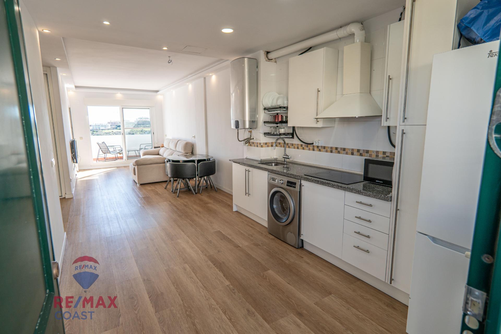 Te gustaría disfrutar de unas vistas panorámicas a la a la bahía de Mijas y su entorno natural único?? ~~PRIMERA LINEA DE GOLF DE CALANOVA~~Esta propiedad goza de espectaculares vistas panorámicas al mar, golf y su paisaje. Además cuenta con garaje y tratero.~~Es un complejo tranquilo y seguridad las 24h, a menos de 10 minutos en coche de las colinas de La Cala. En este complejo se encuentra el Calanova Gran Golf.~~La propiedad acaba de ser reformada. Orientación sur. ~Consta de 2 dormitorios y un baño (antes dos, pero se ha convertido en un gran vestidor, sería fácil volver a convertirlo en baño). La cocina está totalmente abierta al salón comedor que accede a la terraza .~~El dormitorio principal también accede a la terraza y cuenta con A/C. Este inmueble tiene suelo hidrófugo, paredes insonorizadas con lana de roca , iluminación indirecta para las grandes veladas con amigos, termo eléctrico a estrenar Fleck y se ha elevado el techo hasta los 2,68 m que da muchísima amplitud.~~El complejo cuenta con 2 piscinas, pistas de pádel , parques infantiles , zonas ajardinadas, fuentes, estanques y un largo etc.~~IBI: 301 €~COMUNIDAD: 123€/ mensual~~A poco menos de 10 minutos en coche se pueden llegar a las ciudades de Riviera y Calahonda. Está a 20 minutos en coche de la ciudad de Marbella y a 35 minutos en coche del aeropuerto de Málaga.~~Si busca un entorno tranquilo con vistas y no muy lejos de la ciudad, este es el lugar perfecto.~~Esta propiedad es perfecta como vivienda permanente, casa de vacaciones o propiedad de inversión para alquileres vacacionales y a largo plazo.~~El precio ofertado no incluye el mobiliario ni los elementos decorativos que puedan aparecer en las imágenes, salvo aquellos considerados instalaciones fijas (como cocina y baño).~~En cumplimiento de las obligaciones de información previstas en la Ley 10/2025, de 28 de diciembre, de servicios de atención a la clientela y transparencia, así como en la normativa sectorial vigente, se hace constar que el precio indicado no incluye los gastos e impuestos inherentes a la adquisición, los cuales se desglosan a continuación:~Honorarios Agencia del comprador: Se informa que eventualmente, podrían existir honorarios profesionales a cargo del adquirente, en aquellos casos, en que se hubieran contratados servicios de encargo de compra (PSI), Personal Shopper Inmobiliario. NO VINCULADOS AL PRECIO DE COMPRA~ITP (Impuesto de Transmisiones Patrimoniales): Se aplicará el tipo impositivo vigente en la Comunidad Autónoma de Andalucía, 7% (17.010€), sin perjuicio de tipos reducidos del 3,5%, 1,2% o 1% aplicables según las circunstancias personales del comprador o las características del inmueble. El impuesto se devenga sobre el Valor de Referencia Catastral o el precio de venta, aquel que resulte superior~Notaría: Los honorarios notariales se calcularán conforme al arancel oficial (RD 1426/1989, de 17 de noviembre)~Registro: La inscripción en el Registro de la Propiedad se facturará según el arancel oficial (RD 1426/1989, de 17 de noviembre)~Gestión (Gestoría): Opcional. Si el cliente lo solicita, los honorarios por la tramitación administrativa, liquidación de impuestos e inscripción registral ascienden de forma estimativa a 395 € aprox. (IVA incluido)~Se informa al cliente que dispone de la correspondiente Ficha Informativa de Segundas o Ulteriores Transmisiones de Viviendas~Puede calcular su situación personal en el portal oficial de la AgenciaTributaria de Andalucia-Información Tributaria-Impuestos.~~Este inmueble se comercializa mediante sistema de Multivexclusiva, lo que implica que, cualquier gestión realizada en relación con la compraventa del mismo, habrá de ser realizada a través de nuestra agencia. Por ese motivo, le rogamos que se ponga en contacto directo con nosotros sin importunar directamente a propietarios u ocupantes de la propiedad.~