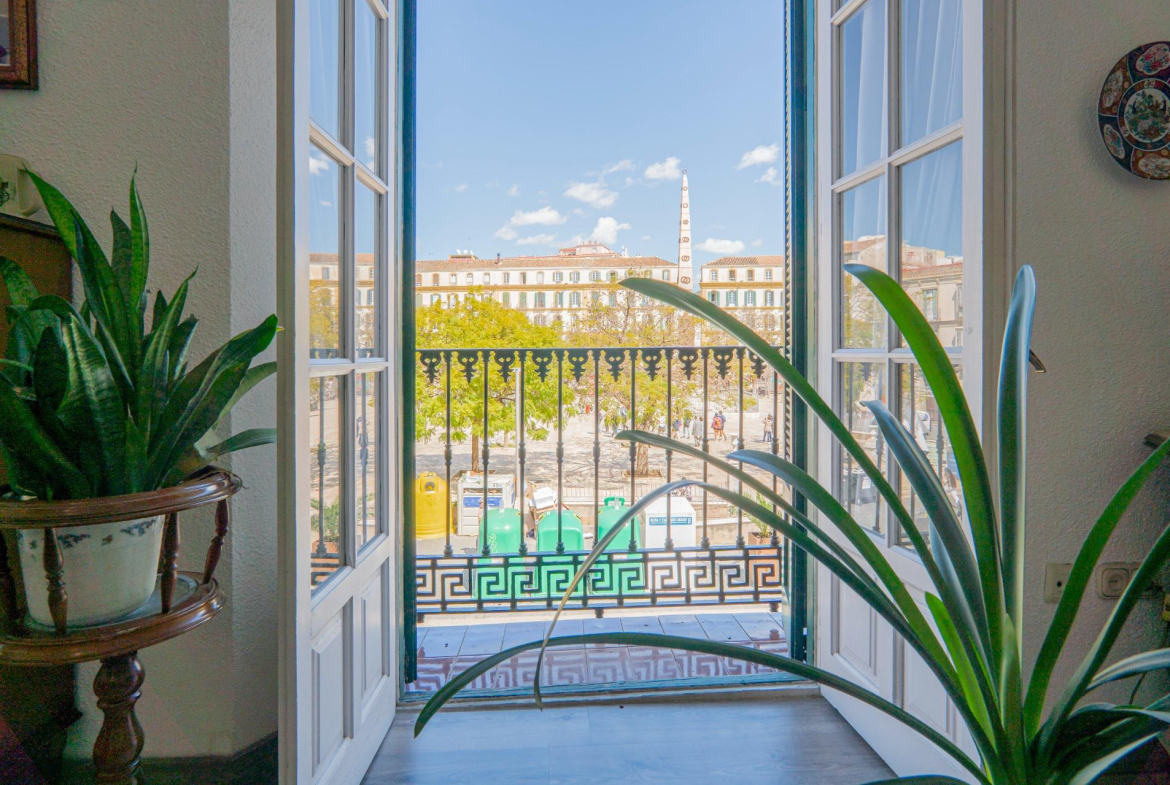 Ofrecemos una espectacular vivienda en unas de las plazas mas emblemáticas de Málaga . Una oportunidad única para vivir en pleno centro histórico , con vistas privilegiadas . La Plaza de la Merced , situada a pocos metros de la calle Larios , La Alcazaba , Castillo de Gibralfaro . Teatro Cervantes , museos Picasso ( entre otros muchos ), Soho Málaga , puerto y tantos puntos mas de interés . Una zona muy rica en cultura , gastronomía y vida social , lo que la convierte en una de las mejores ubicaciones para vivir en Málaga . A 10 minutos del aeropuerto internacional y a 5 de la playa de La Malagueta .~~Desde un portal de entrada al edificio , accedemos por el ascensor directamente a la vivienda . Un hall da paso a un gran salón señorial , de techos altos y con dos balcones con vistas a la plaza . Cocina independiente . Un amplio pasillo distribuye el resto de la vivienda , cuatro dormitorios dobles , un aseo y dos baños ( uno de ellos en suite ) . La vivienda , cuenta también , con patio interior .~~Una vivienda con mucho carácter , techos altos y casi 200 metros en un entorno vibrante y lleno de historia Ideal como residencia , segunda vivienda o inversión con alta rentabilidad .~~~~