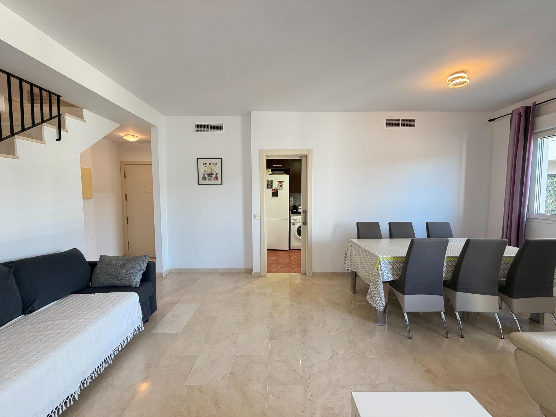En la urbanización Villa Borghese, parte del prestigioso Valle Romano Golf Resort, se encuentra este magnífico apartamento dúplex en perfecto estado de conservación. La vivienda está situada en un entorno tranquilo y verde, y ofrece una combinación ideal de confort, amplitud y una ubicación excelente.~~El apartamento dispone de tres amplios dormitorios con armarios empotrados, uno de ellos con vistas al mar. En la planta superior se encuentran dos baños renovados; en la planta baja hay un aseo de cortesía adicional. La vivienda está acabada con un elegante suelo de mármol pulido y disfruta de una abundante entrada de luz natural.~~El amplio salón y comedor se comunican con una cocina independiente, totalmente equipada, con una terraza adicional donde se ha colocado discretamente el calentador de agua. Un práctico trastero en el hall de entrada completa el confort funcional. Junto al salón se encuentra un jardín privado orientado al sur, donde podrá disfrutar plenamente de barbacoas, agradables veladas de verano y del maravilloso estilo de vida mediterráneo.~~La instalación completa de aire acondicionado (sistema split tanto en la planta baja como en la planta superior) fue renovada en noviembre de 2025; se dispone de todas las facturas y documentos. Además, el apartamento ha sido recientemente pintado en su totalidad y se han renovado tanto los suelos de mármol como los baños.~~Una plaza de garaje subterránea, idealmente situada junto a la entrada del garaje, está incluida en el precio.~~La urbanización cuenta con una piscina comunitaria, está rodeada de agradables senderos peatonales y dispone de garaje subterráneo. Gracias a su tranquila ubicación fuera del centro de Estepona, y aun así a tan solo cinco minutos en coche de supermercados, restaurantes y tiendas, esta vivienda es una base perfecta tanto para residencia permanente como para disfrutar de vacaciones.~~Una oportunidad única para quienes buscan espacio, calidad y una ubicación excepcional junto al campo de golf.~~En cumplimiento del artículo 10 del R. D. de la Junta de Andalucía 218/2005 de 11 de octubre por el que se aprueba el reglamento de información al consumidor en la compraventa y arrendamiento de viviendas en Andalucía, informamos al cliente que tiene a su disposición la Ficha Informativa en Segundas o Ulteriores Transmisiones De Viviendas. El precio de la vivienda no incluye los gastos de compraventa (notaría, registro e I. T. P. ). No existen honorarios de intermediación inmobiliaria adicionales al precio de venta.~~Este inmueble se comercializa mediante sistema de Multiexclusiva, lo que implica que, cualquier gestión realizada en relación con la compraventa del mismo, habrá de ser realizada a través de nuestra agencia. Por ese motivo, le rogamos que se ponga en contacto directo con nosotros sin importunar directamente a propietarios u ocupantes de la propiedad.~