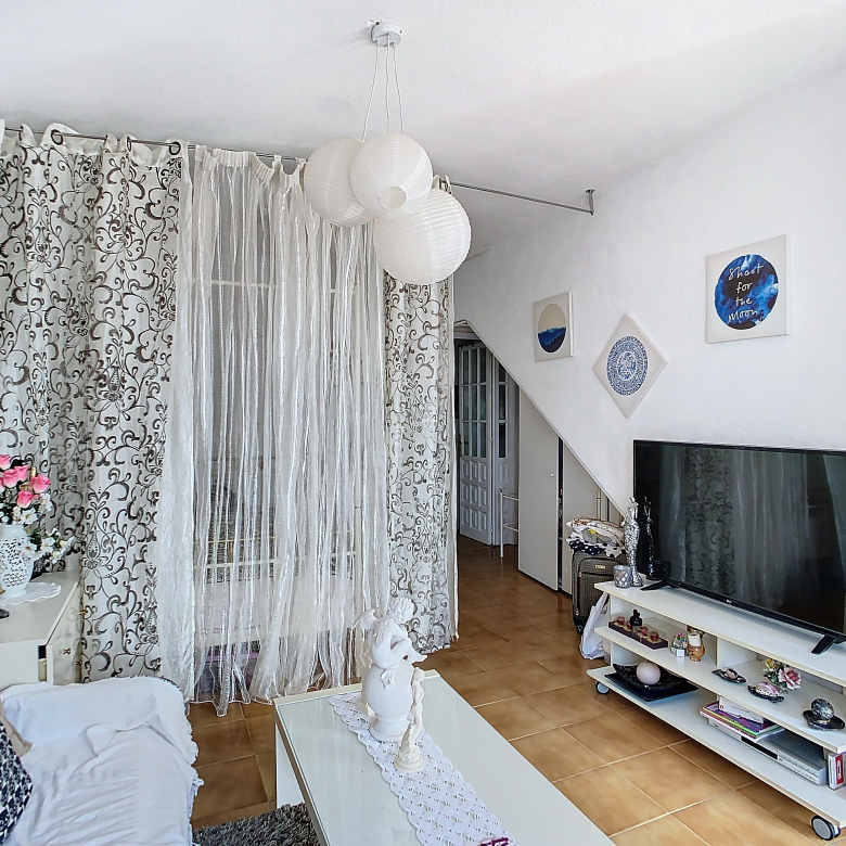 La acogedora vivienda de 70 m2 está distribuida en un gran salón-comedor con cocina abierta al salón-comedor, dos habitaciones con cama matrimonial y doble cama y un baño. Rodeada por un patio abierto donde también encontramos una barbacoa de piedra que permite poder disfrutar de reuniones con la familia y/o amigos con total tranquilidad.